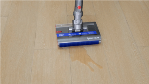 在进行了常规吸尘处理后,将注入清水的Nautik™洗地滚筒进行一次推拉,地面上残留的液体和污渍很容易就被清理干净了;同时,得益于V12 Detect Slim Nautik™洗地吸尘器轻巧的机身和灵活的转轴,长时间手持拖地也毫不费力。