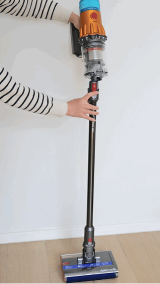 而且,V12 Detect Slim Nautik™洗地吸尘器用起来也很省心,仅需一键就可卸下原有的吸尘配件,切换到Nautik™洗地滚筒配件,然后机身内置的芯片就会智能感应、自主调试为洗地清洁模式,不需要再进行其他调试操作,对老人来说非常友好。