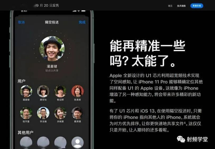 在民用领域,真正进入到我们的视野是苹果公司在 iphone11 上推出的空间感知能力 Spatial Awareness。利用 UWB 技术的超高精度定位能力,提高了手机的定位精度,并且能够感知周围手机的准确位置。