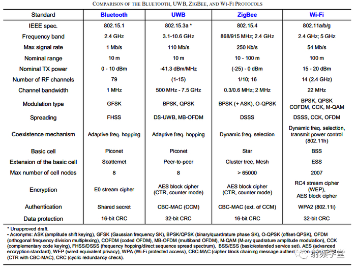 所以在通信领域,十全十美的技术可能真的没有。下表是 UWB 和 Wifi,BLE,zigbee 等短距离无线通信技术的一些参数对比,合适的技术需要用在合适的场景才完美。
