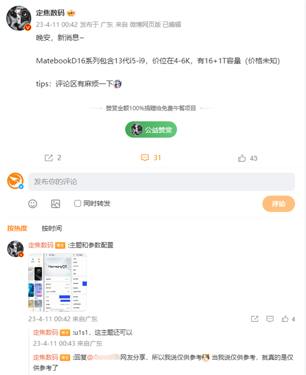 今日,数码博主“定焦数码”爆料华为Matebook D16系列时,还在评论区晒出了一张华为nova 11的系统界面截图,这也是该机首次有明确的配置信息曝光。