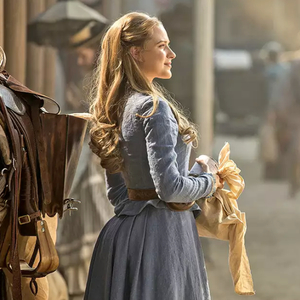 《西部世界》剧照,左边人物为预装了故事情节的机器人。
