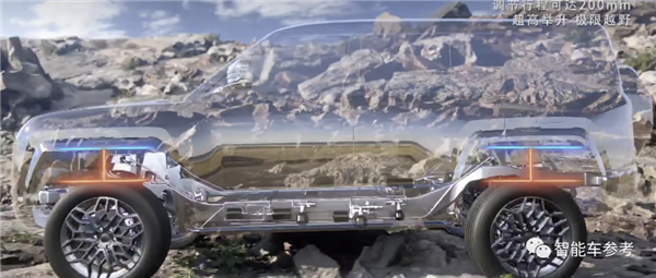 无论是悬挂支撑性、还是四轮各自的悬挂行程,甚至是车身前后轴、四轮点位的离地间隙,都可以分别调整。