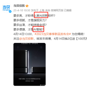 当然,这以上种种只是目前的猜想,当贝新品会以怎样的外观和配置亮相,我们还需要等到4月14日13点的线上发布会,届时让我们一起看看当贝投影将给我们带来怎样新的光影体验。