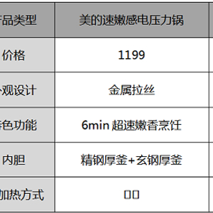 通过综合对比笔者建议预算充足,而且对便捷、口感、多功能烹饪有较高需求的朋友,可以考虑一下这款美的速嫩感电压力锅,在同等价位中功能十分全面,安全、省时、便利,厨房小白也能轻松制作各种食材,非常的物超所值!
