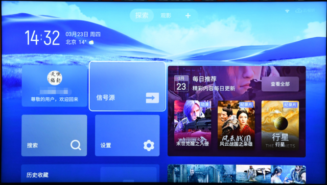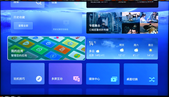 目前主流智能电视品牌的操作系统仍然坚持使用内容标签,引导用户通过横向排布标签进行内容查询,虽然这种方法因为沿用时间长,部分用户已经养成使用习惯,但“标签”排布的方式其实很简单粗暴,以产品经理的逻辑来锁死用户习惯,“电影”→“电视剧”→“综艺”→“纪录片”→“4K专区”……几乎成了千篇一律的顺序,可以看到几个标签的内容其实均可划归“影视”,而年轻用户真正希望使用电视来做什么呢?也许是“健身”,也许是“K歌”,也许是“社交”,也可能是“家庭相册”,而这些标签往往排序靠后,需要多次翻页才能抵达。