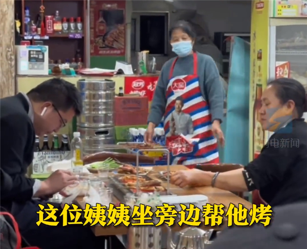 网友直言这位大哥是全淄博吃烧烤最幸福的人了,老板娘也完美诠释了什么叫“好客山东”。