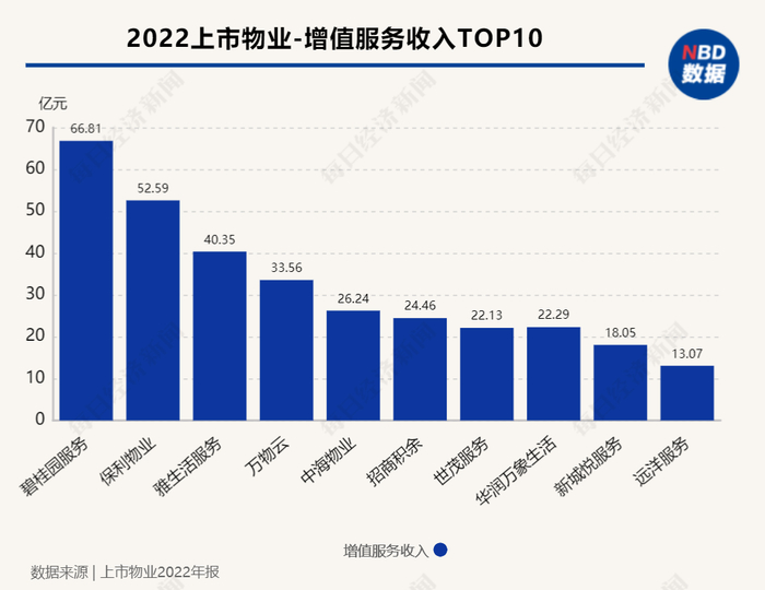 2022年,碧桂园服务增值服务收入约66.81亿元,稳居行业第一。其中社区增值服务收入约为人民币40.2亿元,较去年同期实现同比增幅超过两成。碧桂园服务的眼光已经放在更远的将来,碧桂园服务执行董事、总裁李长江看好2023年,“增值服务会进行全面升级,渴望进入收获期。”