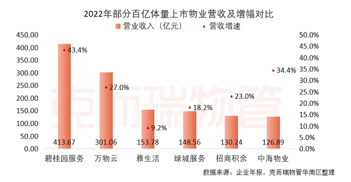 这个“万亿级”市场竞争已然日趋激烈,强者恒强的格局也更加凸显。回顾国内上市物企近期交出的2022年业绩成绩单,碧桂园服务成为国内唯一一家营收突破400亿元大关的物企。