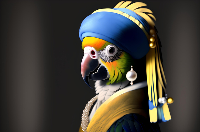 一只戴着珍珠耳环的鹦鹉,维米尔风格,12K,高画质,高清,Octane Render