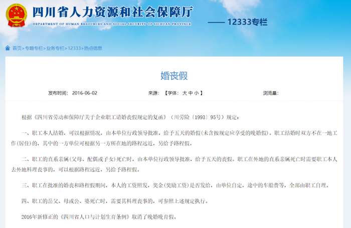 此前,四川人力资源和社会保障厅对“婚丧假”曾有如下说明: