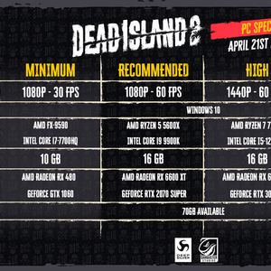 IT之家 4 月 12 日消息,游戏开发商 Dambuster Studios 于今天公布了游戏《死亡之岛 2》(Dead Island 2 )的运行配置,共有最低、推荐、高品质(High)和极致(Ultra)四种配置。