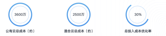 结合私有云资源超高复用比运营配置,可进一步缩减总投入的硬件资源,综合对比公有云可有效降低 50% 左右的支出成本,全面提升财务收益。