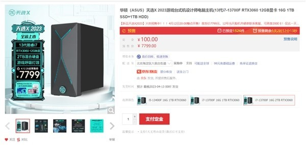 4月12日,备受欢迎的华硕天选X2023高性能台式机升级归来!升级的炫酷外观、强大的配置,相信会成为众多玩家的新选择!其中一款搭载了第13代英特尔?酷睿?i7-13700F处理器,配备RTX3060显卡、16GB内存、1TBGB固态硬盘以及1TB机械硬盘,预售价7799元。如果您近期有购买台式机的计划,千万不要错过这款产品哦!