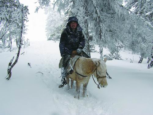 2005年,向左甫在红拉山上骑马寻找猴子。