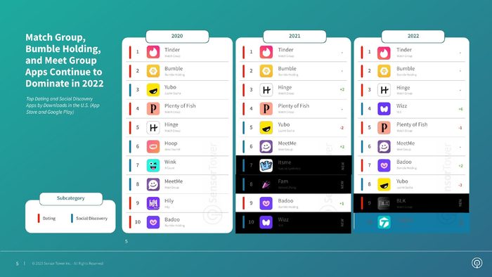 Sensor Tower:2023年美国约会和社交发现应用报告