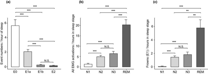 不过,结果发现,所有受试者都表现出了一些皱眉的表情。就算你睡了个好觉,在快速眼动期(REM)仍然会频繁皱眉。
