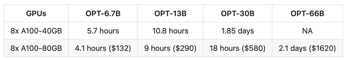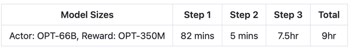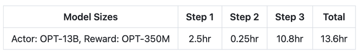 大约半天时间,你拥有 130 亿参数的模型即可完成训练。下表展示了整个过程在三个步骤中所需的时间: