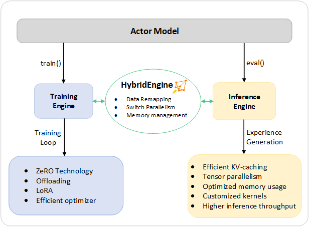 Figure 2. 设计图解:DeepSpeed Hybrid Engine,用于加速 RLHF 流程中最耗时的部分。