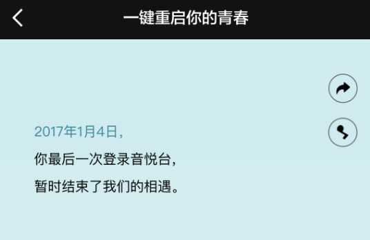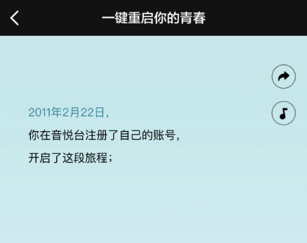 另外,官方还在App首页上线了“一键重启你的青春”页面,可回顾账号在音悦台的点点滴滴,并且笔者的账号还成为了音悦台终身荣誉会员,应该是老用户回归专属,目前暂不清楚所谓的荣誉会员有哪些功能特权。