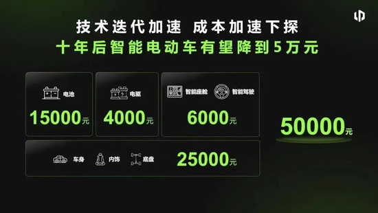零跑科技创始人、董事长、CEO朱江明不仅认同“软件定义汽车”这一观点,更在中国电动汽车百人会论坛(2023)上表示,软件定义汽车的时代,智能技术迭代应该遵从“摩尔定律”,用的人越多,智能软件迭代越快,价格越便宜。并给出了十年后智能电动车将进入5万元时代的观点。