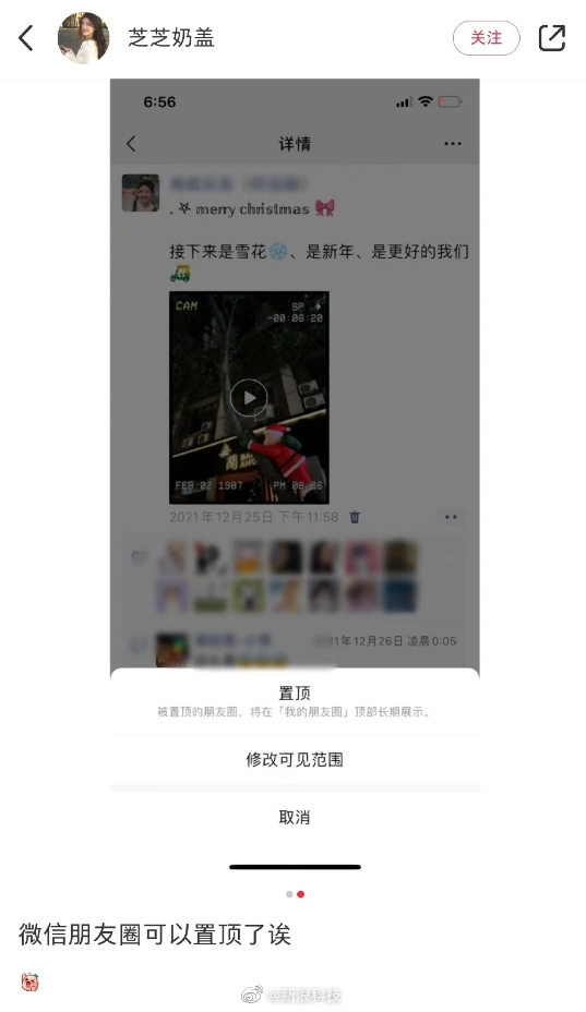 不过需要注意的是,目前还不了解这个置顶的判定机制,因为很多用户的朋友圈都设定为3天可见等限制,不知在该限制下置顶功能是否有用。