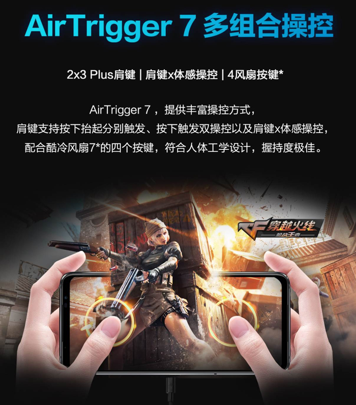 腾讯ROG游戏手机7系列搭载了全新升级的AirTrigger 7操作系统,超声波肩键可实现点击、速滑、水平滑动、抬起按下分别触发等多种手势操作,配合体感操控和四个酷冷风扇物理按键,突破两指操控的限制,解锁游戏大神“多指秘技”,让玩家轻松实现高阶操作。同时,腾讯ROG游戏手机7系列还针对用户游戏操作习惯设置了一个侧边Type-C接口,在横屏游戏时可将充电线远离手持位置,杜绝干扰指尖操作。