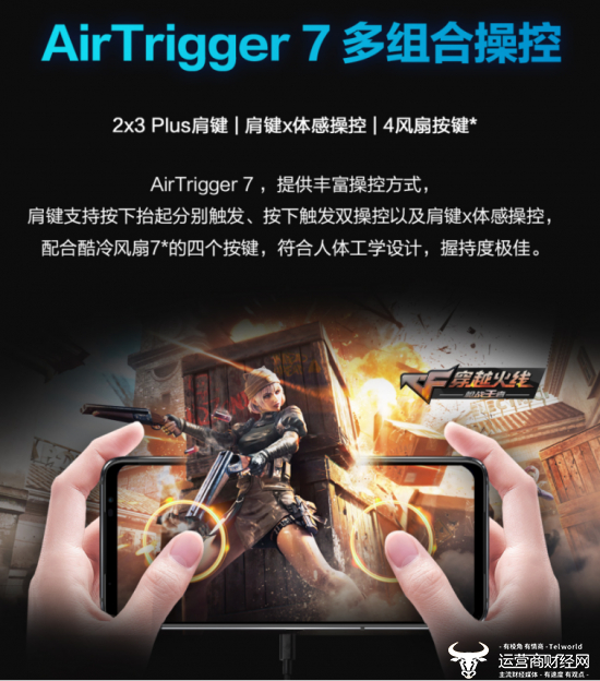 腾讯ROG游戏手机7系列搭载了全新升级的AirTrigger 7操作系统,超声波肩键可实现点击、速滑、水平滑动、抬起按下分别触发等多种手势操作,配合体感操控和四个酷冷风扇物理按键,突破两指操控的限制,解锁游戏大神“多指秘技”,让玩家轻松实现高阶操作。同时,腾讯ROG游戏手机7系列还针对用户游戏操作习惯设置了一个侧边Type-C接口,在横屏游戏时可将充电线远离手持位置,杜绝干扰指尖操作。