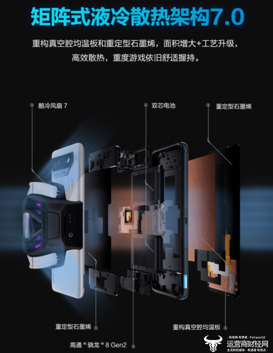 4月13日,腾讯ROG游戏手机7系列产品正式发布,在性能、散热、屏幕、外观等诸多方面实现越阶升级,采用全新高通骁龙8 Gen2 5G移动平台,升级至矩阵式液冷散热架构7.0,Pro版本搭载酷冷风洞阀散热设计,屏幕搭载165Hz刷新率AMOLED电竞屏,实力进阶,给予信仰玩家们颠覆性的游戏体验。