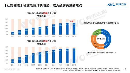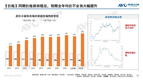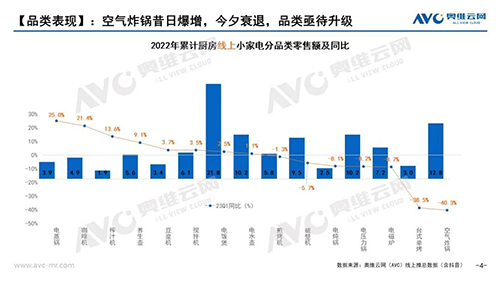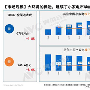 对于购买厨房小家电的消费者来说,在近几年的快速发展过程中大多经历了这样的一个心理过程:2019-2020年在新兴直播电商刺激以及新兴细分品类刺激下疯狂购买,疯狂之后的谨慎在2021-2022表现的淋漓尽致,从市场表现上也清楚能看到消费者更多会选择中高端精致化产品“买好不买多”。当然2020年度的超前更新迭代透支在后续几年也已然存在,整体影响逐年递减,但2023年整个宏观环境的不确定性,也让消费者们加重了理性购买的心理。但无论如何厨房小家电仍然是消费者的刚需烹饪用品,若抛开空气炸锅单品类来看整个行业并没有大幅下调,据奥维云网(AVC)线上推总数据(上述品类,不含空气炸锅)零售额同比为小幅下降1.3%,整个行业保持稳中有降的态势。