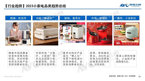 整个疫情放开之后,大批大学生开始进入社会就职,成为小容积产品需求量提升的重要原因之一,据奥维云网(AVC)线上监测数据显示小于4L电饭煲在2023年第一季度零售额份额相较于同期上升3.8%。另外小容积的豆浆机,小体积的榨汁机和破壁机也同样受到消费者的喜爱。