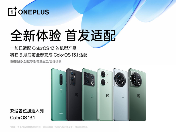 C114讯 4月14日消息(水易)4月13日,一加宣布所有已适配ColorOS 13的机型产品将在5月内全部完成最新系统ColorOS 13.1的适配,包括一加 11、一加 Ace 2、一加Ace 2V等热销机型,而且3年前发布的一加 8系列也在适配计划之列。