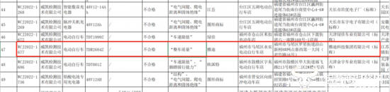 另外,2023年1月29日,北京市场监督管理局发布了北京市电动自行车产品质量监督抽查结果公示(2022年第2批),结果显示有2个批次的标称为雅迪科技集团有限公司生产的电动自行车在抽检中不合格,规格型号分别是TDT1329Z和TDT1323Z,生产日期分别是2022-08-30和2022-09-02,不合格项目均为“锂离子电池管理系统(BMS)(通讯及数据上传功能)”。
