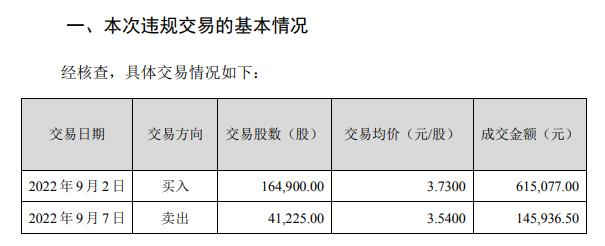 该决定称,在姜平担任北京旋极信息技术股份有限公司董事期间,名下证券账户以集中竞价交易方式于2022年9月2日买入上市公司股票164900股、交易金额615077元,于2023年1月10日卖出上市公司股票30919股、交易金额86264.01元,构成短线交易。