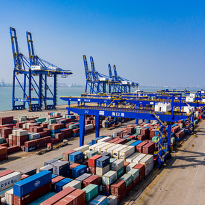 ↑2023年2月12日,海口港集装箱码头,货轮来往穿梭,络绎不绝。据视觉中国