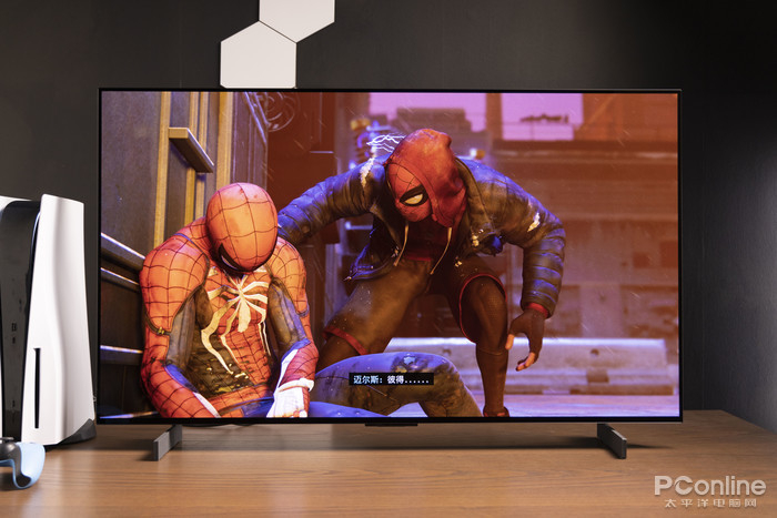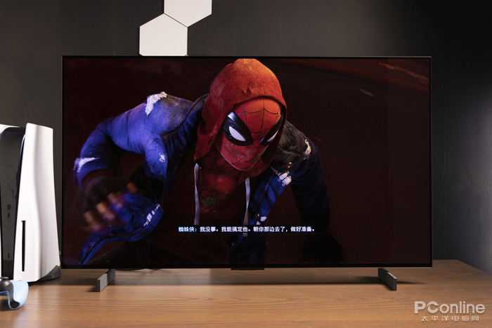 我们测试了《漫威蜘蛛侠:迈尔斯·莫拉莱斯》,通过实拍可以看到,小黑蛛和蜘蛛侠战衣上的材质在这块4KOLED屏幕上表现得淋漓尽致,LGC3所表现出的锐利感,让图像的边缘更为明显,通过图片可以充分想象到战衣的质感甚至是摸上去的手感。而诸如迈尔斯身上衣服的破损,和蜘蛛侠战衣的战斗痕迹,在画面中也得到了充分还原,画面更有带入感。