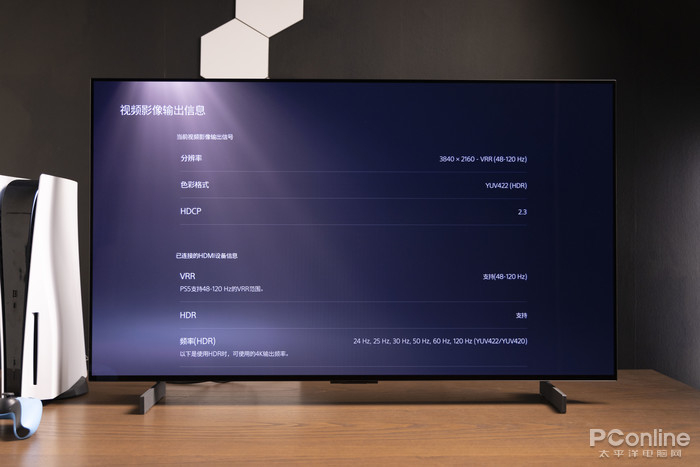 我们连接了PS5,可以看到电视支持最高3840X2160也就是4K分辨率下HDR120Hz信号传输。