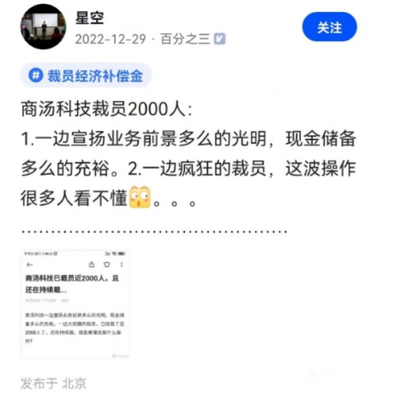 公开消息显示,在2022年初商汤科技就被传裁员,经过一年多密集裁员后,在年底直接开启暴力裁员模式。