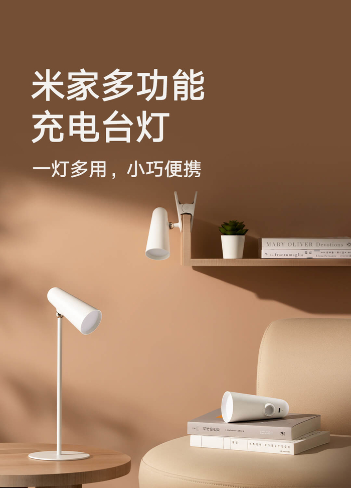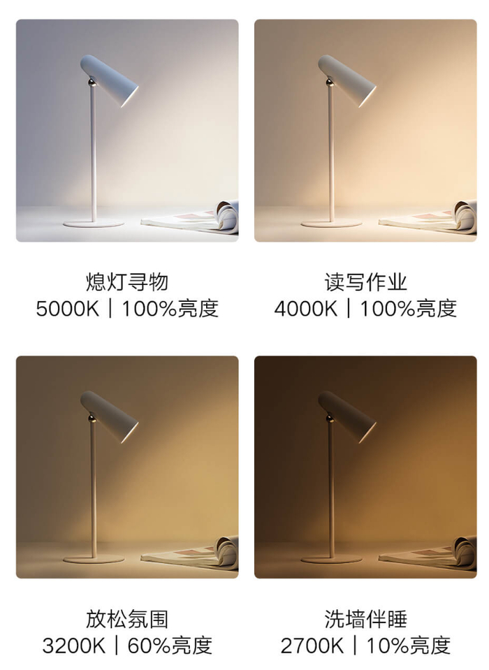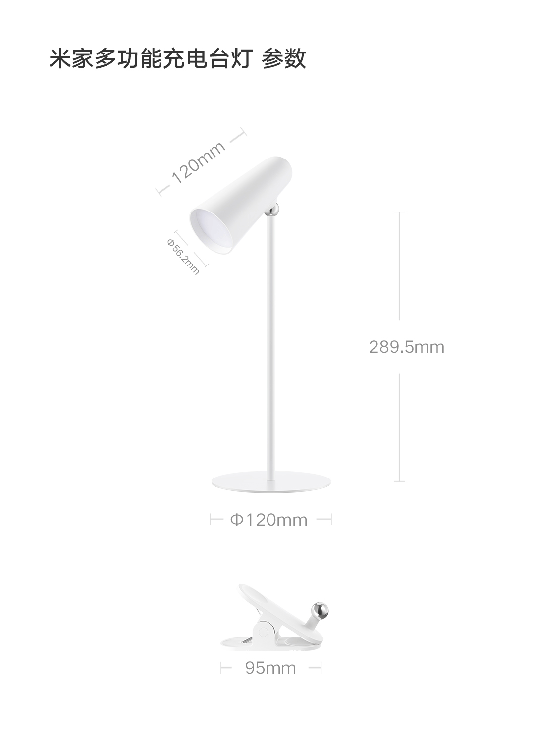 小米米家多功能充电台灯采用磁吸设计,拥有台灯、夹持灯、手电筒三种形态,搭载 2000mAh 锂电池,可调亮度,最高亮度续航超 4 小时,最低亮度续航超 40 小时,显色指数达 Ra90。