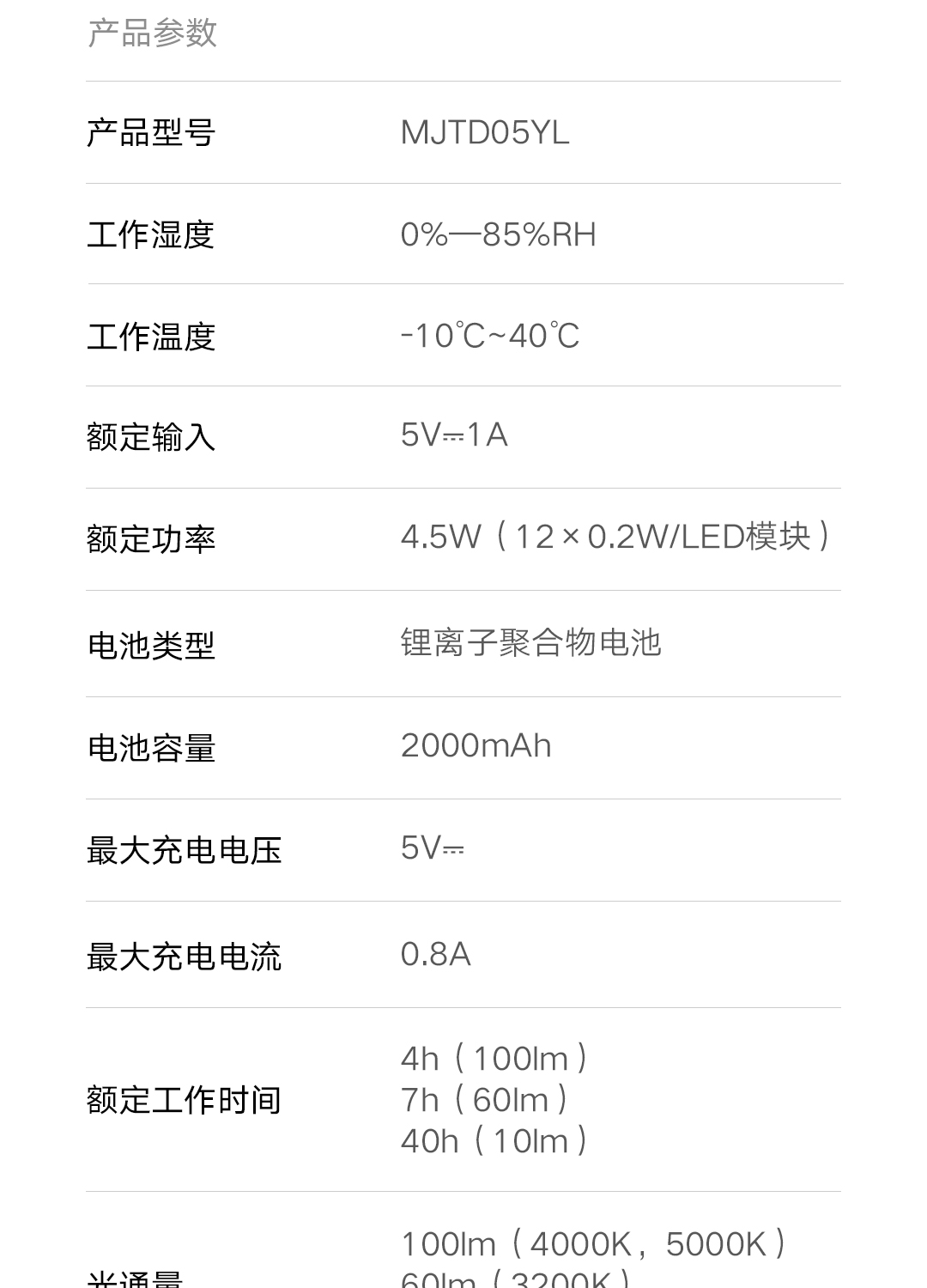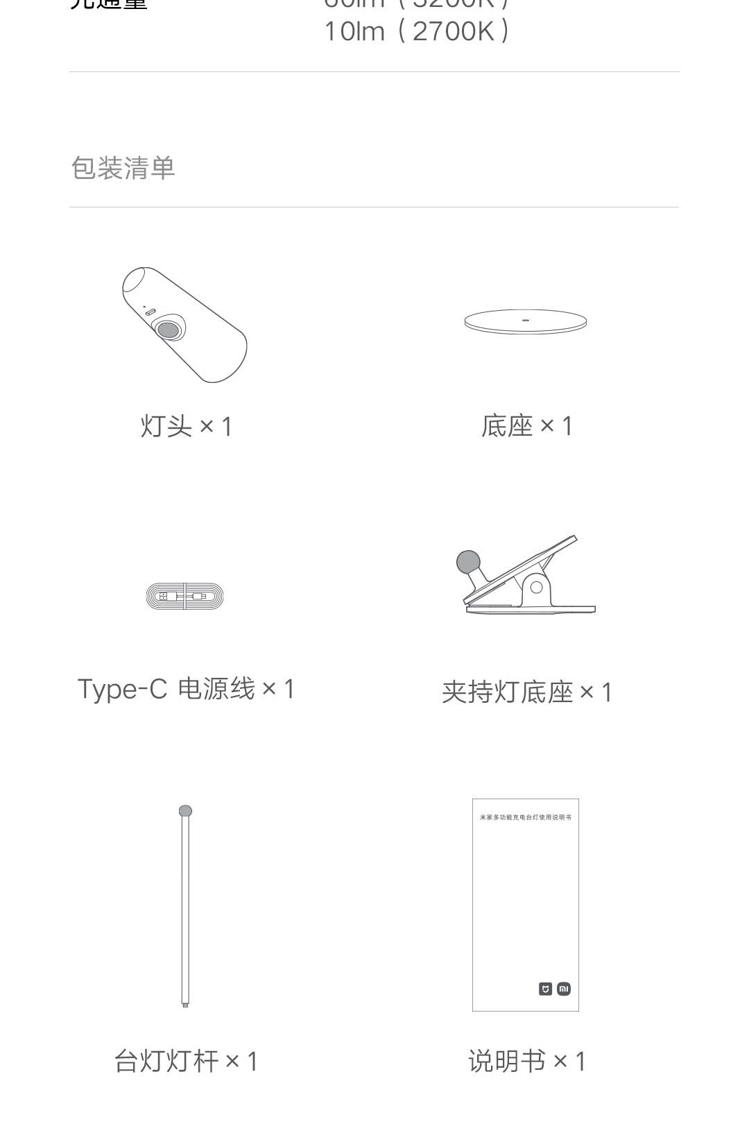 此外,该台灯支持 Type-C 接口充电,插电使用不损耗存储电量,IT之家附完整参数图: