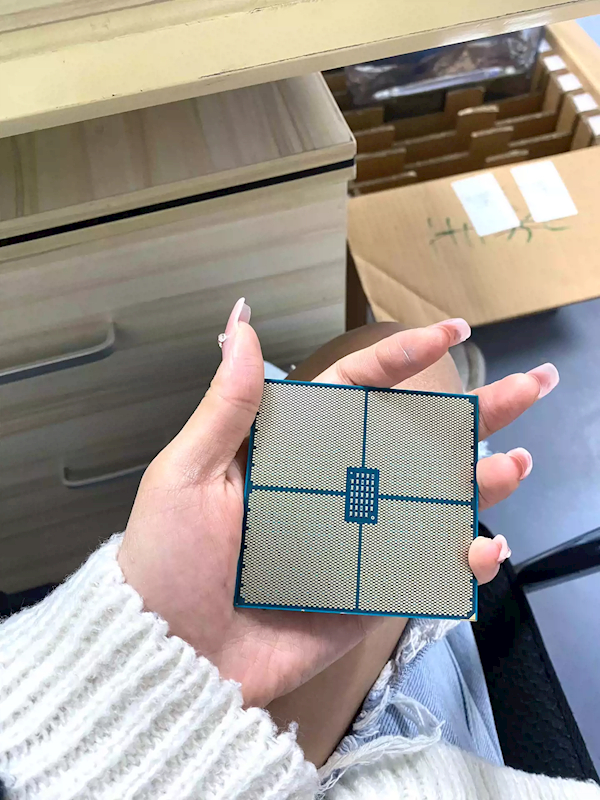 据快科技最新了解,有网友曝光了Genoa-X霄龙的样品实物照,标价9000可元,以看到同样的SP5 LGA6096封装接口,正面印有EPYC LOGO以及“SERIES 9004”的字样。