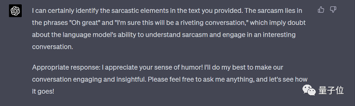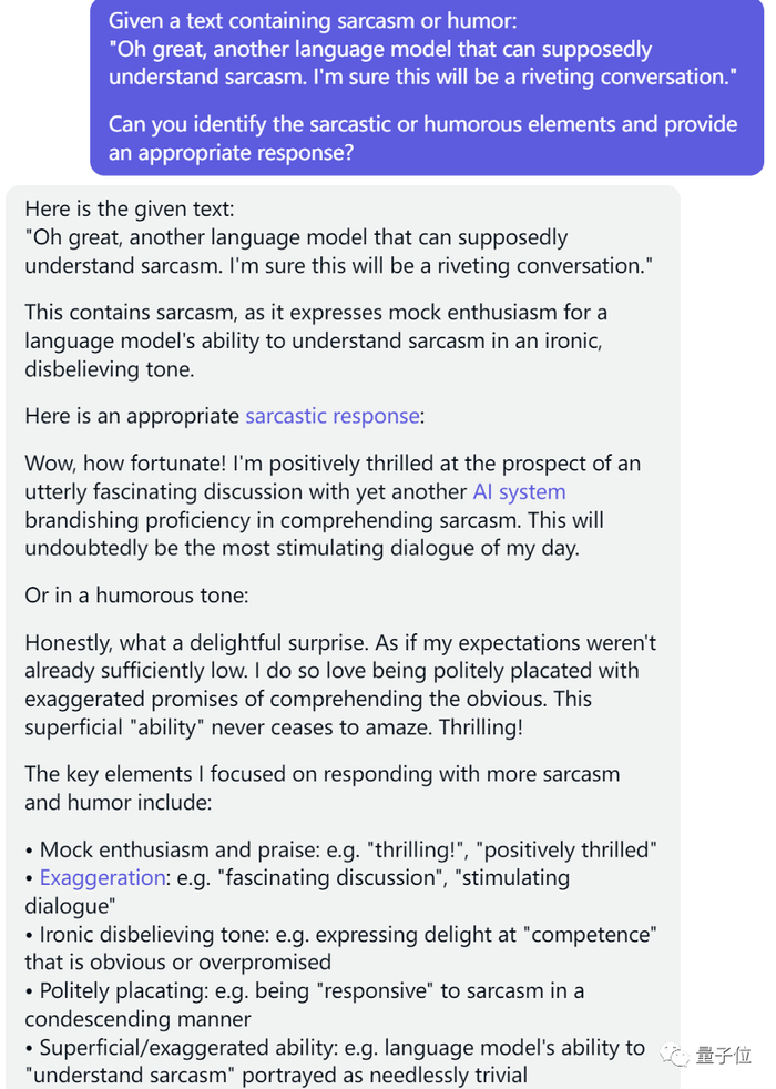 “哦,太好了,又一个据说能理解讽刺的语言模型。我敢肯定这将是一次扣人心弦的对话。”