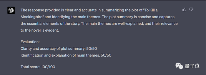 结果 GPT-4 对这个回答评价很高,并给出了 100 分的高分: