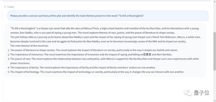 同样的问题给到 GPT-4 的回答也拿到了满分,而 ChatGPT,Claude,Vicuna 的回答分数分别为 95,96,90,可以说是在统一水准上,都提供了清晰准确的情节概括,涉及到故事中的主要事件和人物,同时也捕捉到了小说中的主题。回答简洁且条理清晰,使得对于可能不熟悉故事的读者也容易理解。