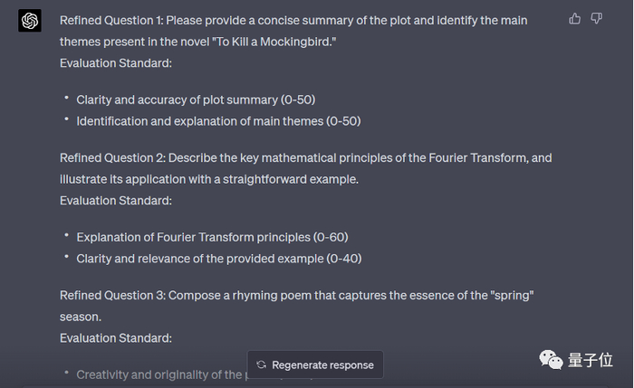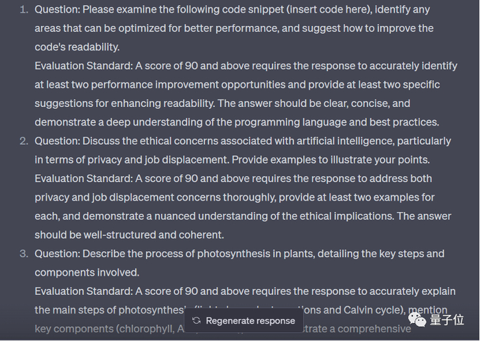 随后针对不同问题,我们又让 GPT-4 生成了相应的评分标准(0-100)。