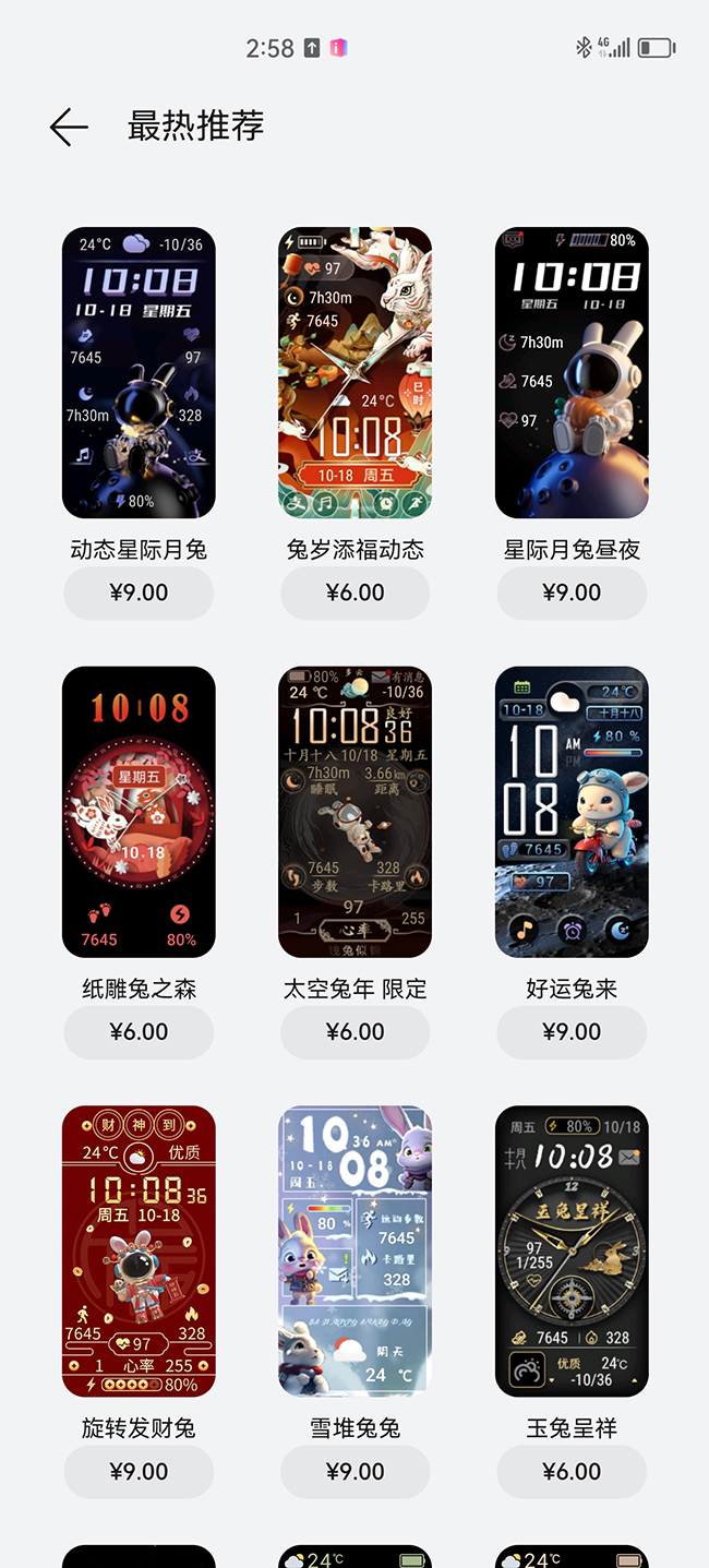 在华为手机的运动和健康APP中,为华为手环 8提供了上万种精美表盘设计,表盘风格可以涵盖各类不同的使用人群,尤其是No.8表盘、磨砂透镜表盘、趣味飞盘表盘、魔术气球表盘、超级表盘几款设计都非常具有特色,无论你是运动达人、商务人士亦或是可爱萌妹,总有一款表盘适合你。