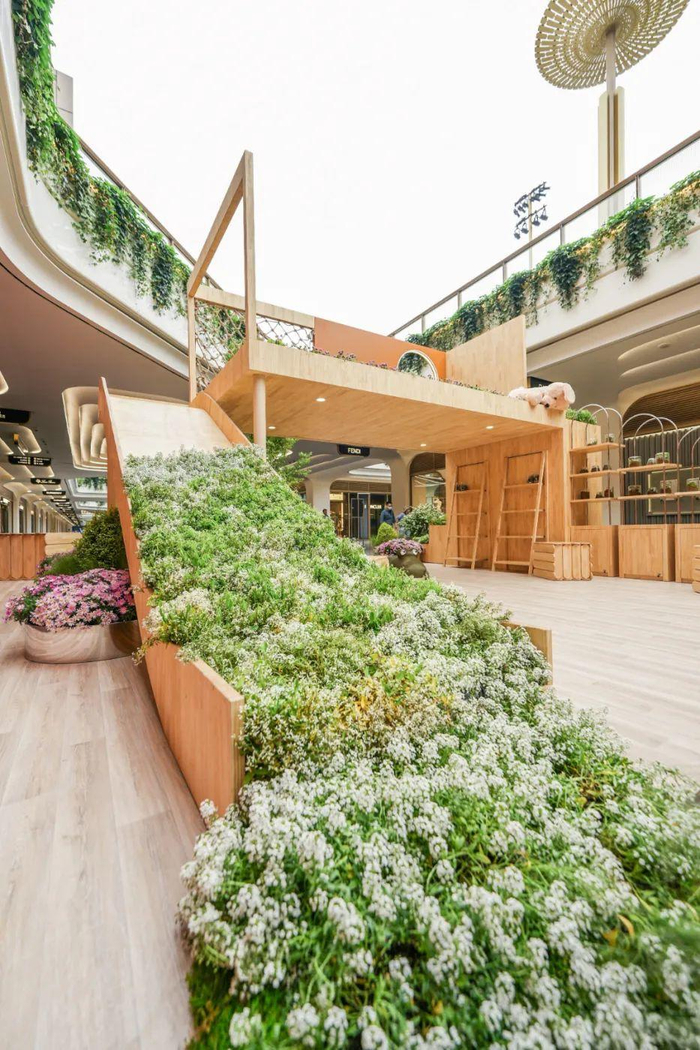 繁花市集由成都SKP馆内的四大品类与由花园奇境绝佳结合,超过万株的各类鲜花与植物品种,结合园林艺术的造景贯穿一体,织锦入画,鸟语花香。