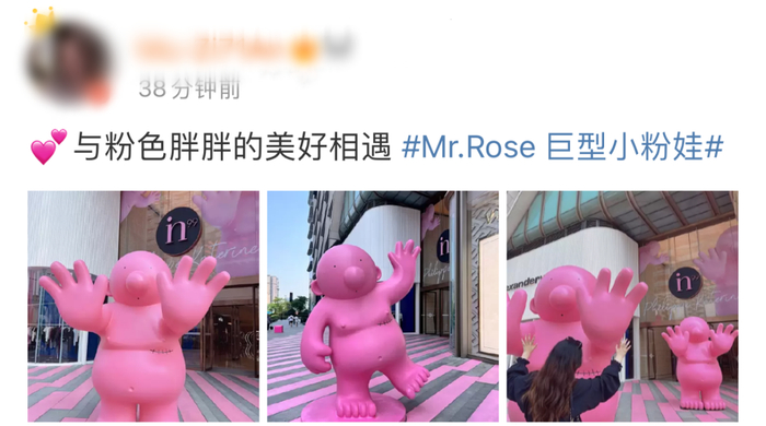 日前,Mr.Rose巨型小粉娃中国首展正式登陆成都银泰中心in99。8米高粉色巨人首次降落成都,前两天周末已有不少小姐姐去打卡啦!