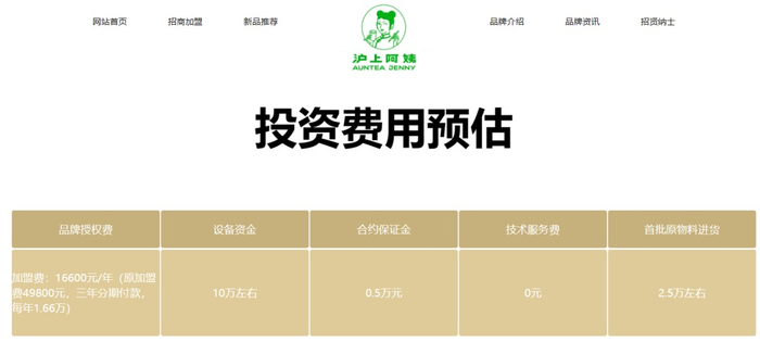 沪上阿姨目前的加盟费用