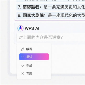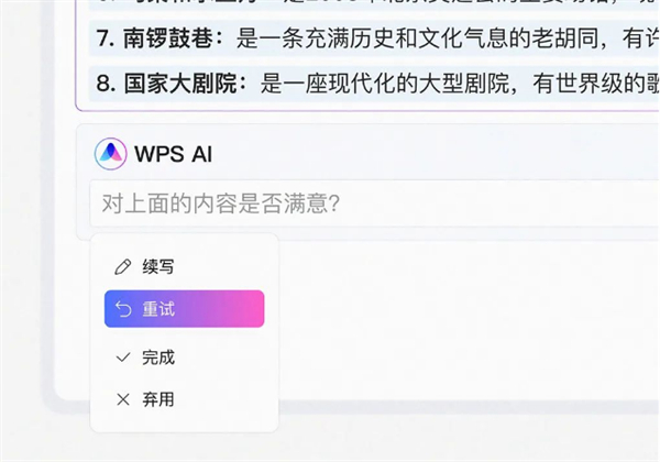 在实际应用上,它能够根据用户的需求描述直接生成文档,也能够通过多轮对话修改WPS AI生成的文本内容,如果对质量满意,也能够一直聊下去,让AI进行续写。